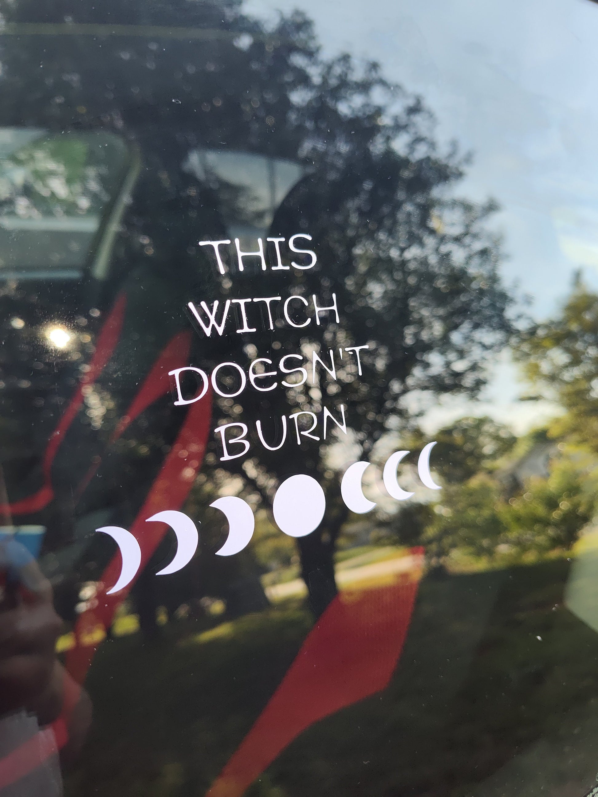 This Witch Doesn't Burn Decal - Vinyl Car - Waterproof Sticker for Windows, Bumpers Laptops - Durable Weatherproof Goth Sticker Wicca Decor